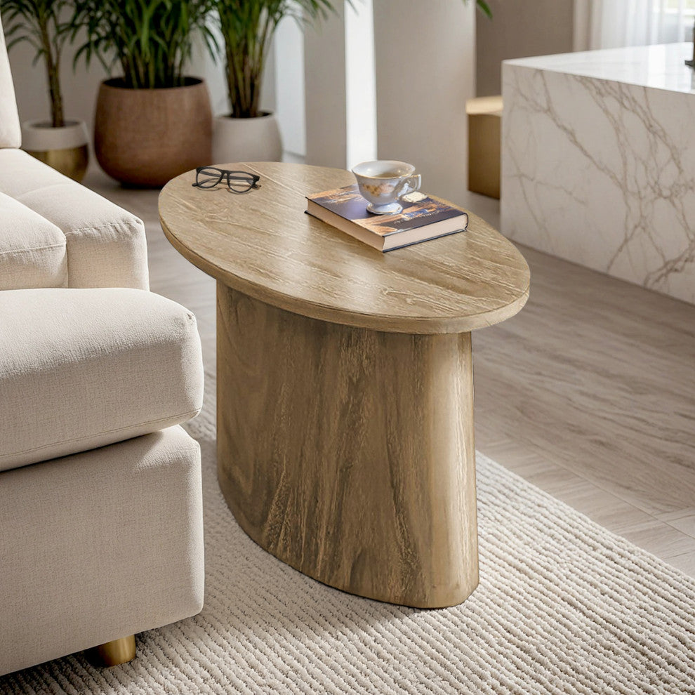 DESCRIPTIONEnhance your space with the Chapel Hill Oval Accent Table, a modern and versatile piece ideal for a variety of aesthetics. Featuring a sleek wood pedestal base and a 24-inch oval top, this table is a stylish addition to living rooms, bedrooms, or a den. Handcrafted with sturdy wood construction, it offers durability and complements modern or contemporary interiors. The smooth wood finish and clean lines create a minimalist yet impactful design, while its compact size fits seamlessly into small spaces. Whether used as an end table, living room accent, or paired with matching pieces from the Chapel Hill collection, this table adds modern elegance to your home.No assembly is required.FEATURES? Sleek and modern oval shape, 24�� in diameter ? Durable wood pedestal base for sturdy support ? Versatile design fits a variety of d��cor styles ? Perfect for living rooms, bedrooms, or entryways ? Neutral color and minimalist design for easy pairing ? No assembly required for quick setup ? Ideal for small spaces or as an accent piece ? High-quality craftsmanship for long-lasting useMATERIALSWire Brushed Mindi Solids And VeneersSIZE DESCRIPTIONOverall:24"W x 14"D x 22"H