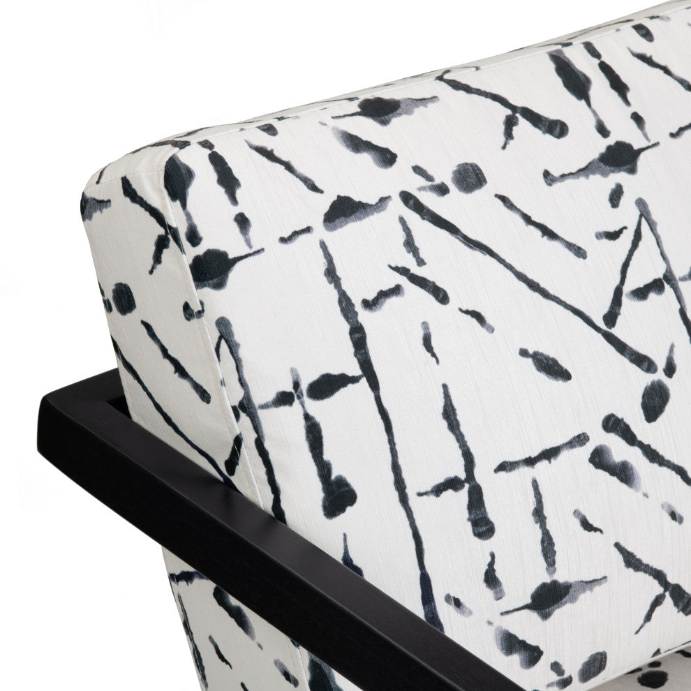 This modern accent chair combines style and comfort, featuring a durable rubberwood frame with a hand-painted black finish and polyester upholstery. The fixed foam cushion and included kidney pillow provide plush support. Its striking white fabric is adorned with an abstract charcoal brushstroke pattern, adding an artistic, contemporary touch. Floor levelers ensure stability, and with no assembly required, it''s ready to elevate your space immediately with its chic and functional design