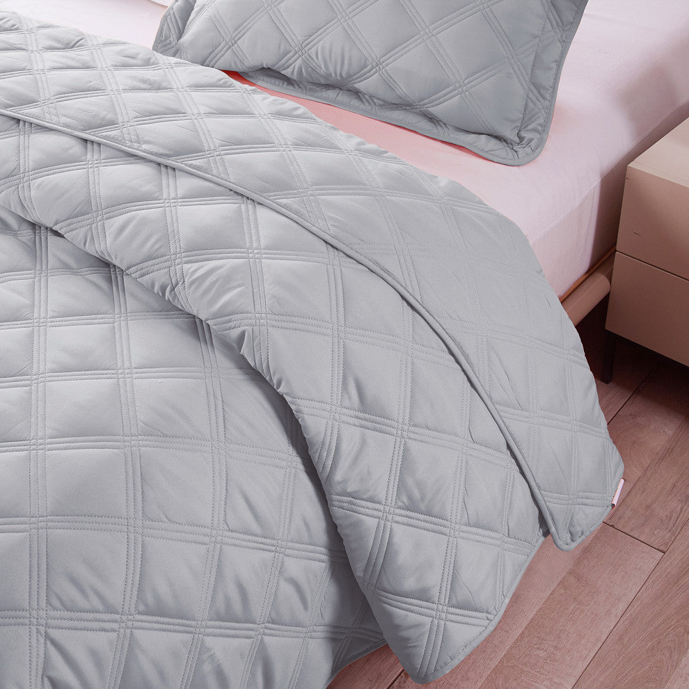 Complete Set: Twin Size includes 1 Twin Bedspread: 80 x 106 Inches, 1 Pillow Sham: 20 x 26 Inches ; Queen Size includes 1 Queen Bedspread: 100 x 106 Inches, 2 Pillow Shams: 20 x 26 Inches ; King Size includes 1 King Bedspread: 118 x 106 Inches, 2 Pillow Shams: 20 x 36 Inches.SOFT and DURABLE: This set is made by 100% polyester shell, quilted with down alternative filling. It"™s a simple but exquisite bedding set which is perfect for everyday use or to pull out on occasions. Pre-washed without any harsh chemicals or treatments for additional softness and to lock the color into the fabric.DOUBLE SIDED DESIGN: This set is a classic simple solid home bedding sets in vibrant colors. Classic diamond quilted design is featured on both sides, which is highly detailed and stitched to perfection.GREAT HOME DECOR: This set can transform your bedroom into a retreat where life is pleasing to your senses. Every moment spent in bed will bring comfort, relaxation and rest. Impressively soft and gentle, pleasing to the eye and easy on the wallet!EASY CARE: Machine Wash Cold, Separately, on a Low Setting. Tumble Dry Low, Separately, on a Low Setting OR Hang Dry if Desired. • • DO NOT BLEACH• • This bed in a bad set comes with everything you need right out of the package for a tone down bedding with a diamond square tupe quilted pattern that is calm and soothing. The high quality microfiber shell and cotton/poly filling is super soft and will get more fluffy and soft every additional wash. This bedding will as a fashion style in the bedroom whil giving your body a restful cozy warm sleep. Easy to care for and will last a life time, all you need to do to care for this product is machine wash it in cold water and tumble dry on low and low heat. Please review sizes before purchase for floor touch sizes. Great Charleston traditional quilted designTwin: Coverlet: (80x106)" / Shams 1pcs (20x26+2)"Queen: Coverlet: (100x106)" / Shams 2pcs (20x26+2)"King: Coverlet (118x106)" / Shams 2pcs (20x36+2)"Comes in great plastic rectangular retail packaging that holds everything in oneMade of High Quality Microfiber Polyester250GSMEasy Care: Machine wash in cold water on low and tumble dry on low.DO NOT USE BLEACH!