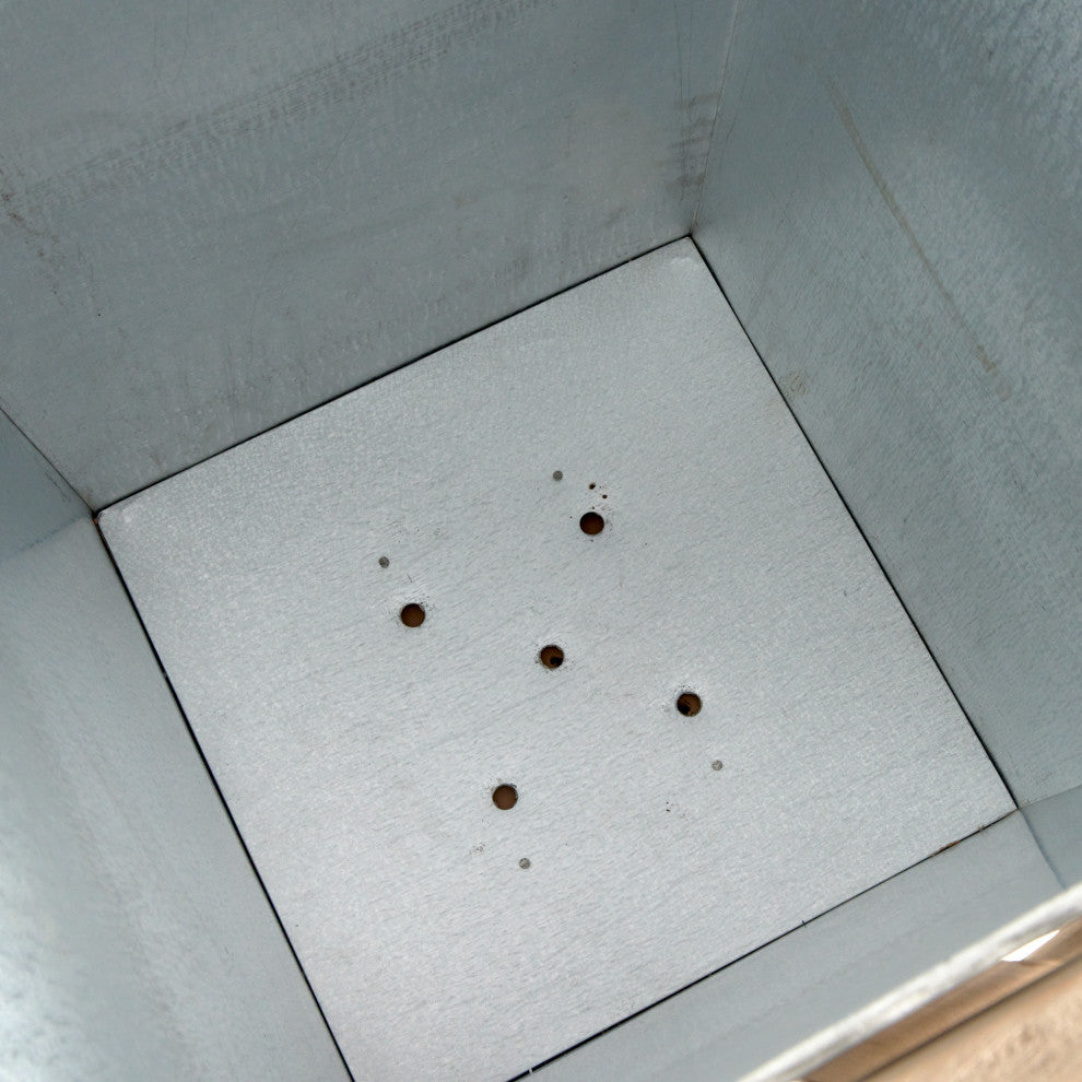 Expertly handwoven using wide gray washed teak wood panels in a check pattern. An exclusive design you won''t see anywhere else, this showstopping planter has a galvanized steel liner with folding handles, drainage hole and is designed with a raised bottom. Smart as well as beautiful!. Made of gray washed teak panels. Made by a highly skilled artisan. Removable steel liner