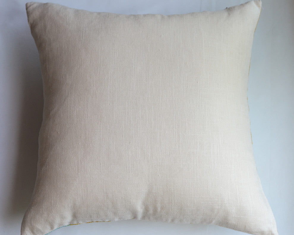 Bold geometric patterns are a hot design trend right now. Update your room with this chenille texture gold and ivory pillow.Pillow is 18" x 18"All of our pillows are handcrafted in our studio with the most careful attention to detail:-Fabric edges are serged-Invisible zipper closure at the bottom-Motif centered on front side, solid fabric on back.-Without insertDry Clean Only.