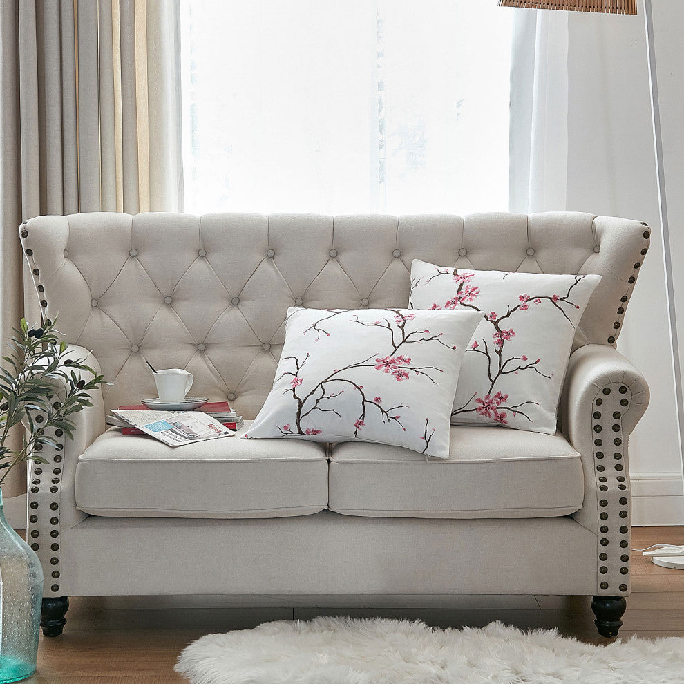 Cherry Blossom Embroidery 2 Piece Pillow Covers, Pink, 20" X 20"