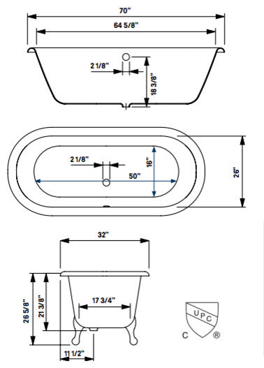 Cheviot Products Regal Cast Iron Bathtub With Faucet Holes