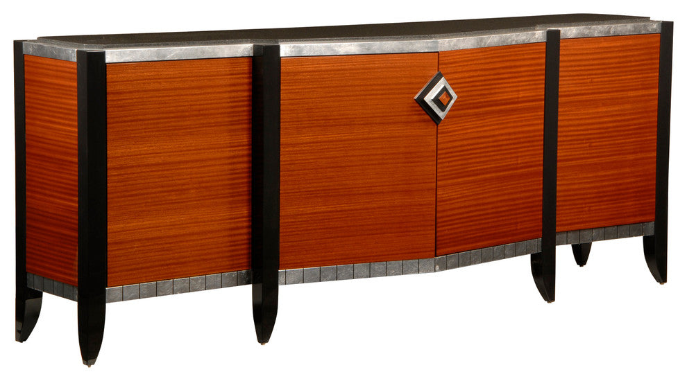 Shown in Ribbon Sapeli with Silver leaf and black detailing.
