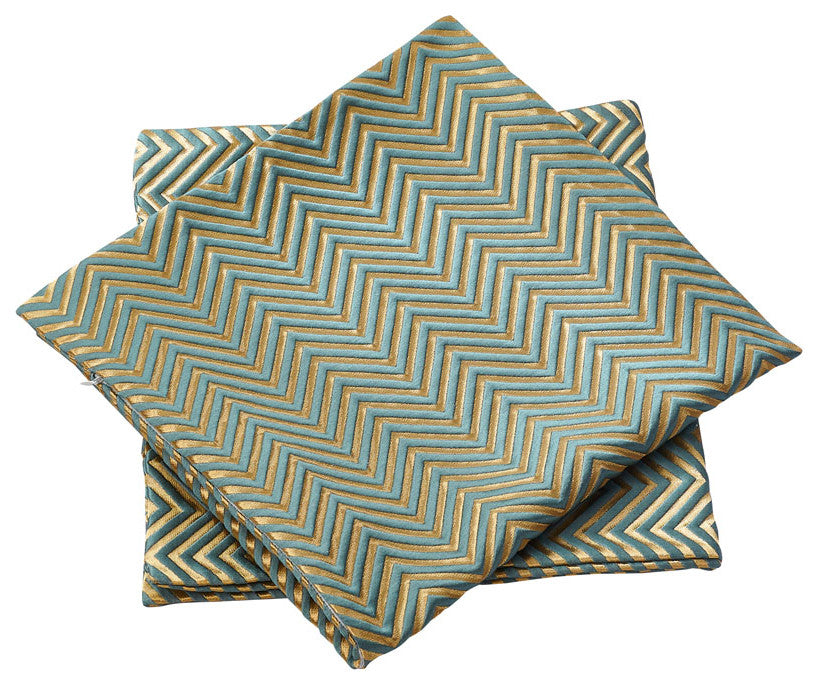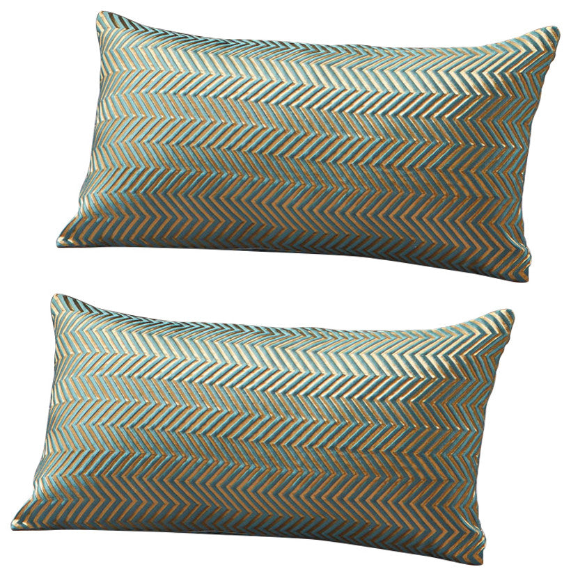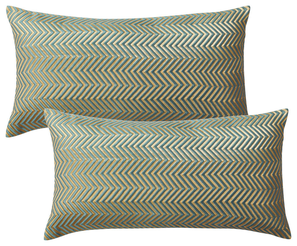 Chevron Jacquard Lumbar 2 Pieces Pillow Shell Set, Deep Teal