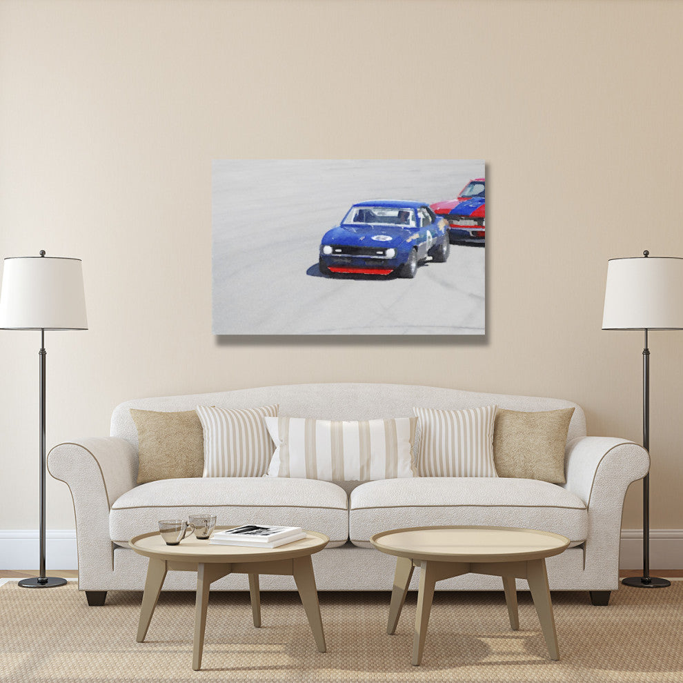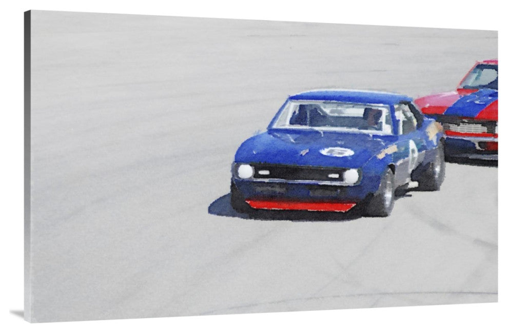 "Chevy Camaro on Race Track Watercolor" Fine Art Print