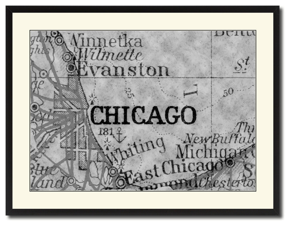 Chicago Illinois Vintage B&W Map Canvas Print, 28"x37"