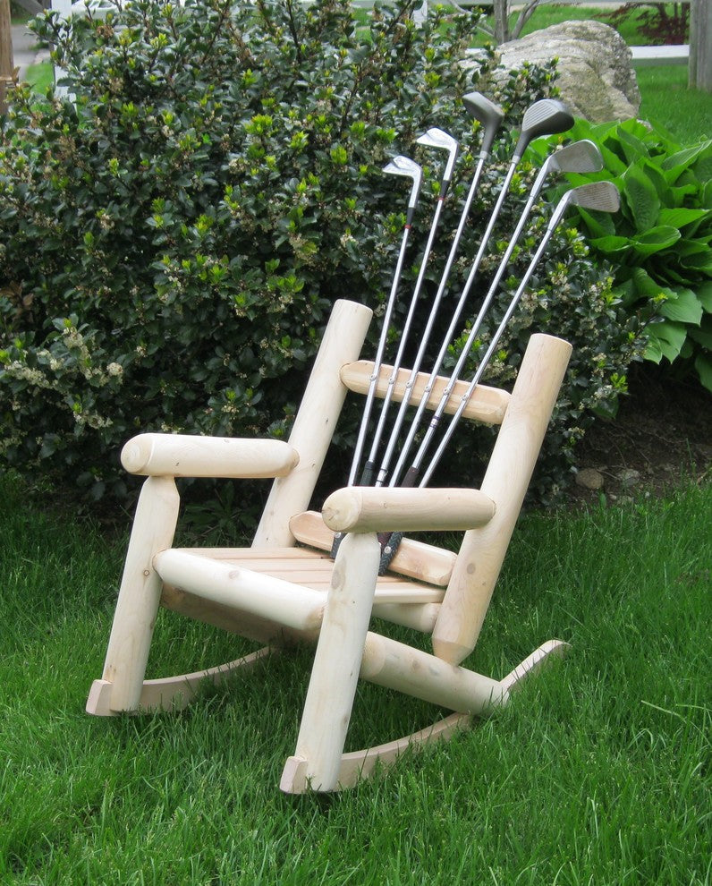 First, sit in the Skichair . Most people think it looks really cool, but then they find out how comfortable they are to sit in. All Skichair Log Rockers have an extremely comfortable back and offer a 100% comfort guarentee. All Skichairs are hand-made Skichairs are made of sturdy white candadian cedar.