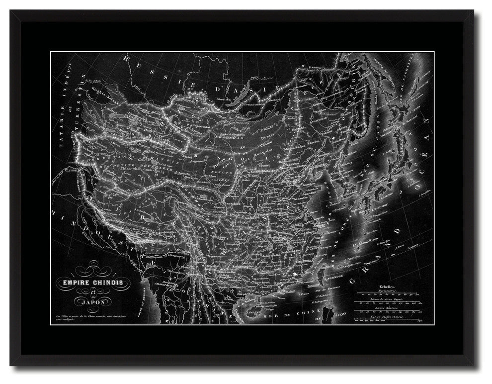 China Japan Korea Vintage Monochrome Map Canvas, 28"x37"