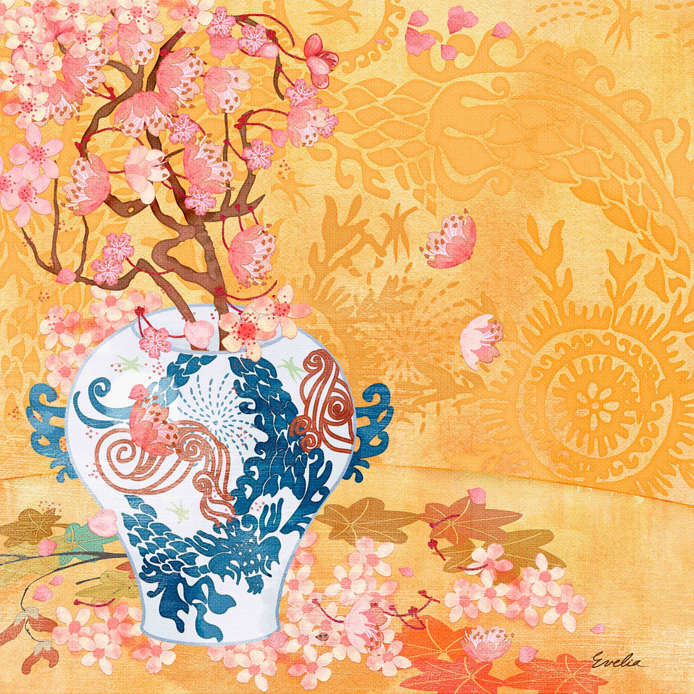 "Chinese Blue Vase II" Painting Print on Canvas by Evelia