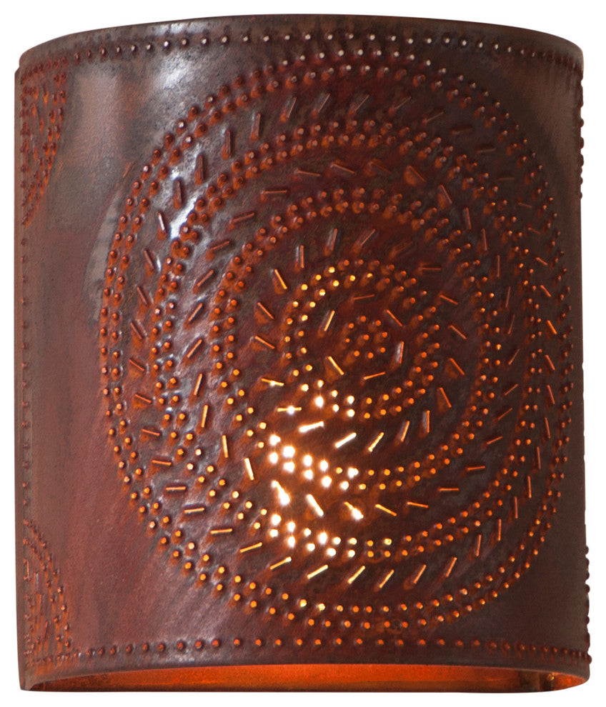 The warm glow of our sconces provide a hearty country welcome to every room in your home from entryway to family room. Direct wired with standard socket, 60 watts max. Rustic Tin finish. Handcrafted in Pennsylvania. This fixture is UL listed.