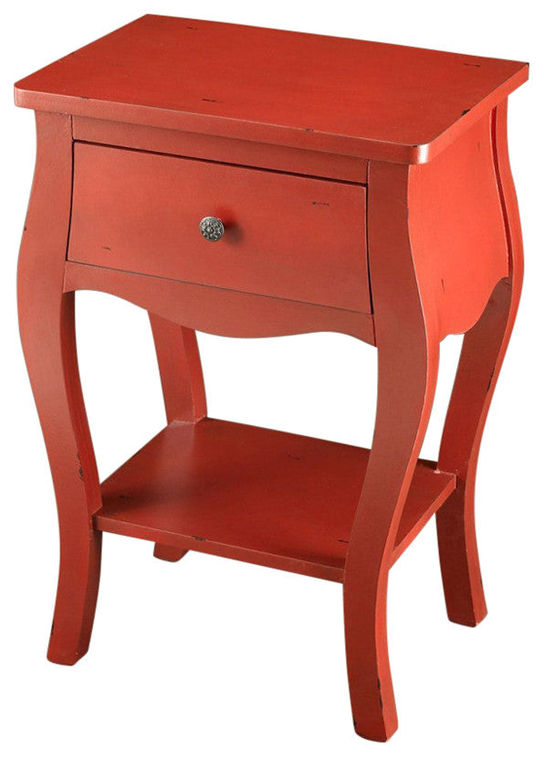 Bring a rustic charm to your spaces with the Chriopher End Table. It boasts a traditional design courtesy of its bombe-like shape. Constructed from solid wood. The table comes with a single drawer where you can store your items, and a matching shelf for added storage.Features:Overall product dimensions are 20" W x 14" D x 29.5" HMade from solid wood constructionSingle drawer and a matching shelf for storageRustic, traditional design that is easy to match with other furniture piecesAvailable in multiple color variationsDimensions:End TableAssembled Product: 20 inches wide x 14 inches deep x 29.5 inches highWeight Capacity: 60 pounds