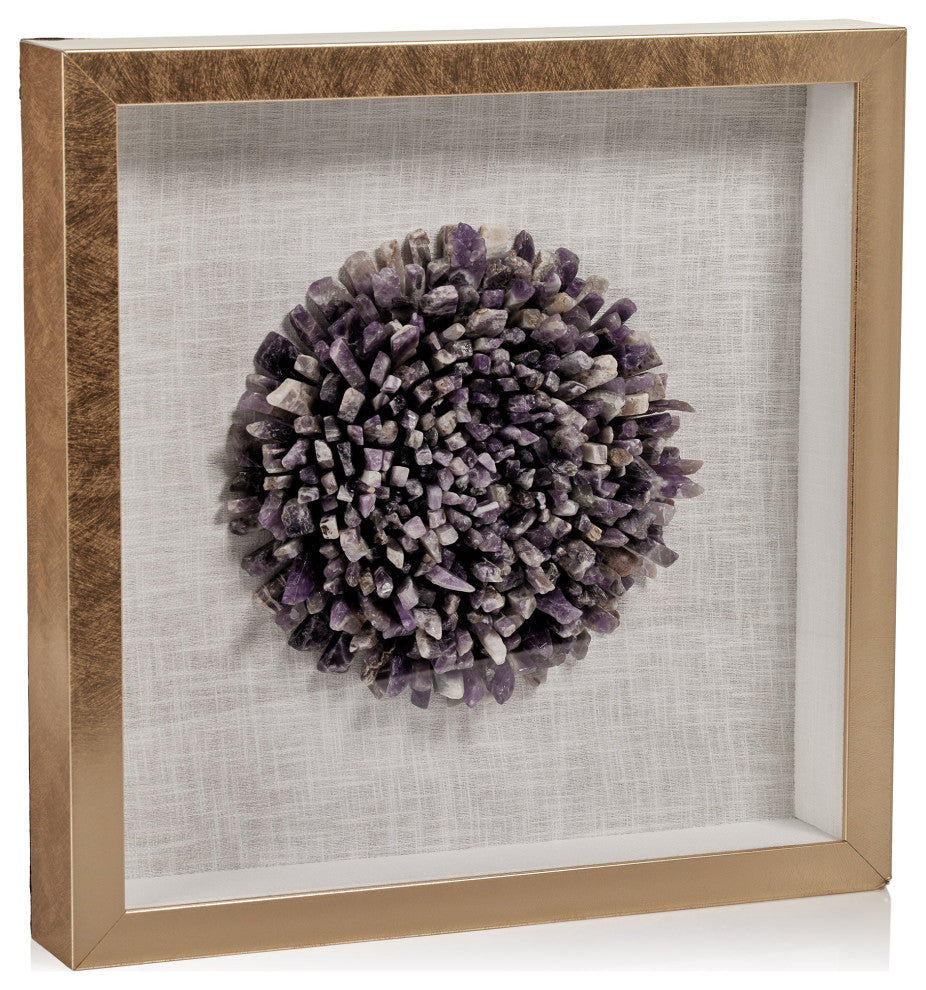 Chrysanths Gold Framed Amethyst Crystal Wall Decor