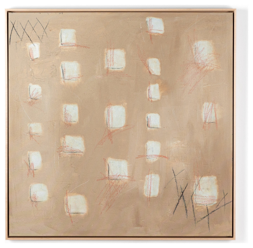 Nashville-based artist Jamie Beckwith creates contemporary pieces inspired by nature, travel and architecture. With a focus on the repetition of patterns and shapes, Beckwith favors acrylic paint and graphite for her layer-rich works. Framed in vertical grain white oak for a gallery-quality look. If not currently in stock, this texture-enhanced piece ships within three weeks.�Handmade in Austin, Texas.