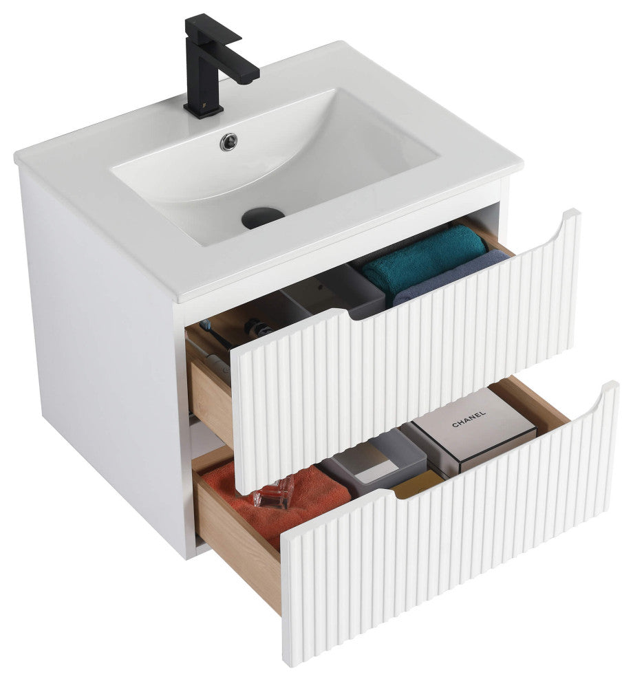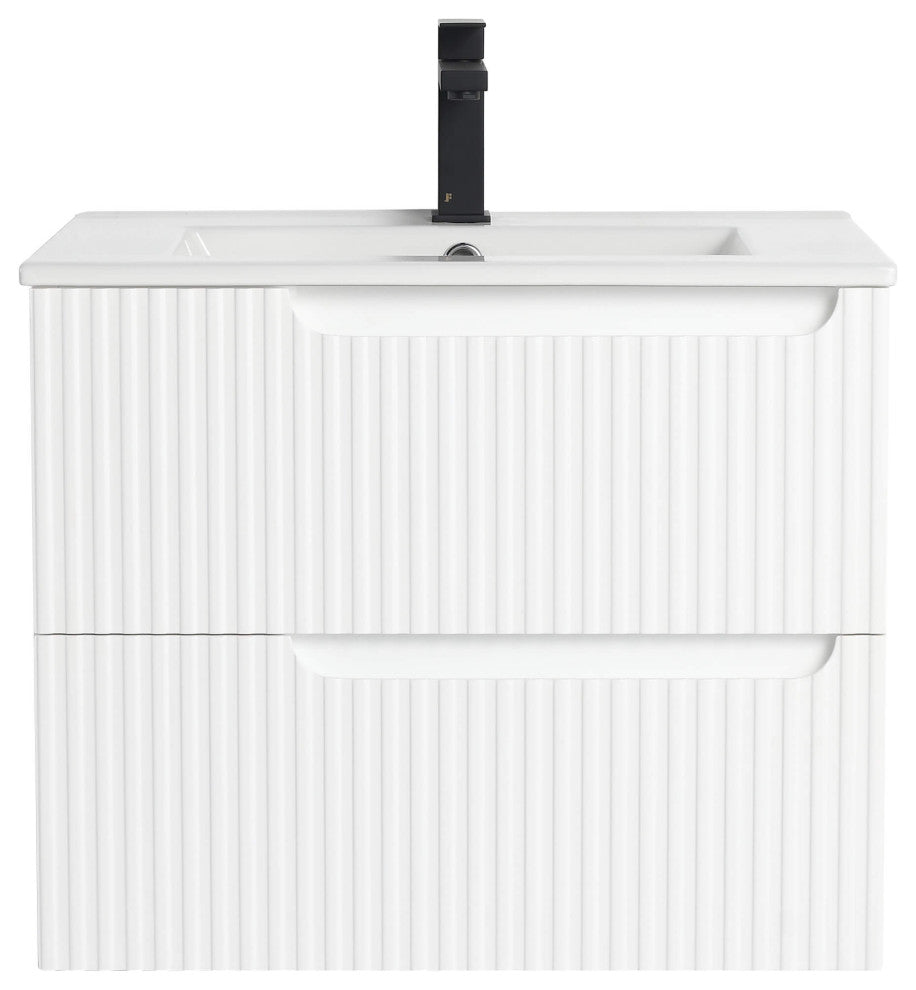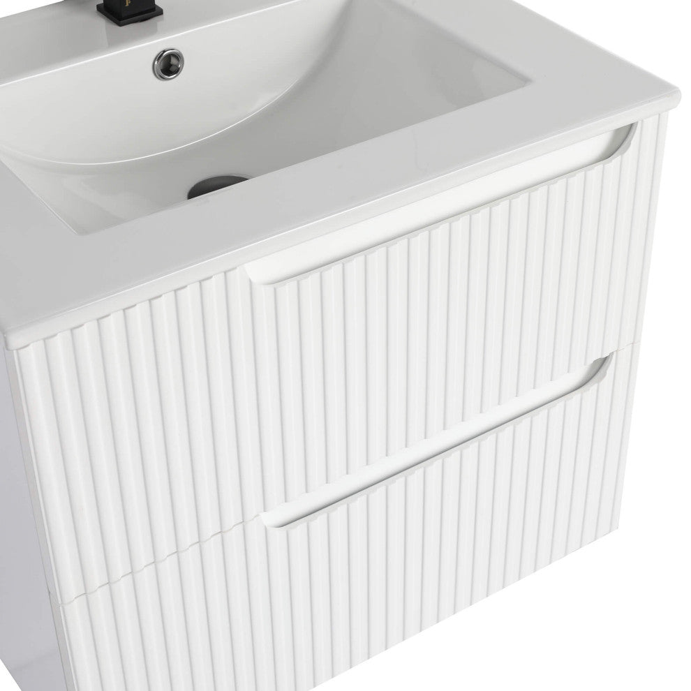 Citiscape Bath Vanity, Textured Drawer Fronts Sink Included, White, 24"