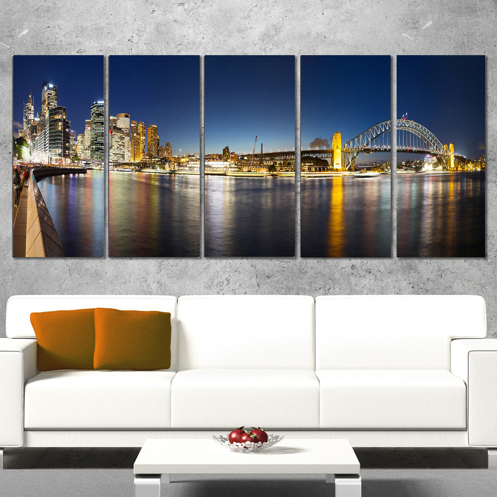 "Cityscape Sydney Nightfall" Panorama Canvas Print60"x28", 5-Panels