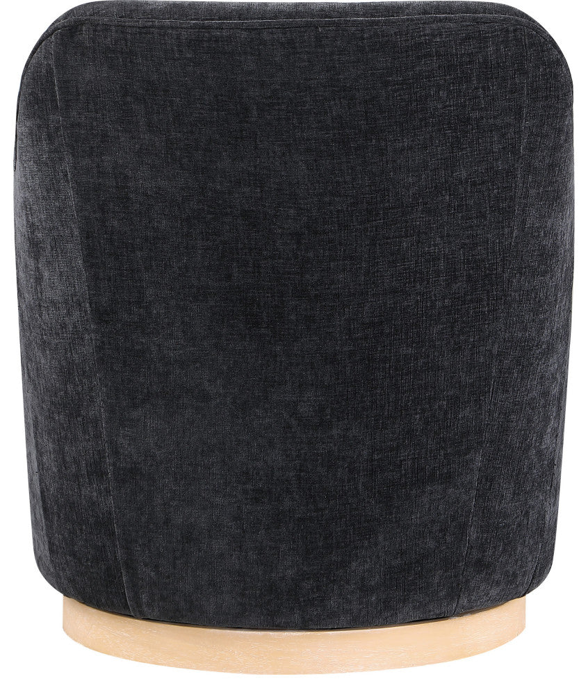 Enhance the comfort and style of your room with the Clarita Chenille Fabric Swivel Accent Chair. This chair features soft black chenille fabric and is designed as a swivel chair with a natural wood finish base. It''s perfect for curling up with your favorite book or settling in to watch your favorite show.Overall Product Dimensions: 26.5" W x 30.5" D x 31" HSoft Black Chenille FabricNatural Wood Finish BaseSwivel ChairContemporary DesignSeat Dimensions: Seat Width: 20.5"Seat Height: 18"Seat Depth: 22"Arm Height: 25"Back Height: 13"
