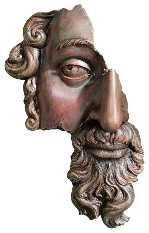 Though only a fragment remains of the French original, this almost two-foot-tall work of classical art shines with a timeless beauty. A strong forehead and distinctive nose anchor the clear-eyed gaze of this masterpiece cast in quality designer resin with a hand-painted dark terra cotta finish to replicate the aged original. A truly dramatic work of art for home or gallery wall! 13.5"Wx5"Dx22"H. 4 lbs.