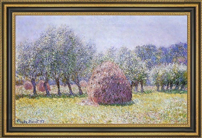 18" x 27" Claude Oscar Monet Haystack framed premium canvas print reproduced to meet museum quality standards. Our Museum quality canvas prints are produced using high-precision print technology for a more accurate reproduction printed on high quality canvas with fade-resistant, archival inks. Our progressive business model allows us to offer works of art to you at the best wholesale pricing, significantly less than art gallery prices, affordable to all. This artwork is hand stretched onto wooden stretcher bars, then mounted into our 3 3/4" wide gold finish frame with black panel by one of our expert framers. Our framed canvas print comes with hardware, ready to hang on your wall. We present a comprehensive collection of exceptional canvas art reproductions by Claude Oscar Monet.
