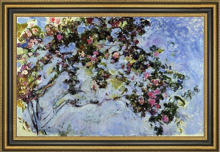 16" x 24" Claude Oscar Monet The Rose Bush framed premium canvas print reproduced to meet museum quality standards. Our Museum quality canvas prints are produced using high-precision print technology for a more accurate reproduction printed on high quality canvas with fade-resistant, archival inks. Our progressive business model allows us to offer works of art to you at the best wholesale pricing, significantly less than art gallery prices, affordable to all. This artwork is hand stretched onto wooden stretcher bars, then mounted into our 3 3/4" wide gold finish frame with black panel by one of our expert framers. Our framed canvas print comes with hardware, ready to hang on your wall. We present a comprehensive collection of exceptional canvas art reproductions by Claude Oscar Monet.