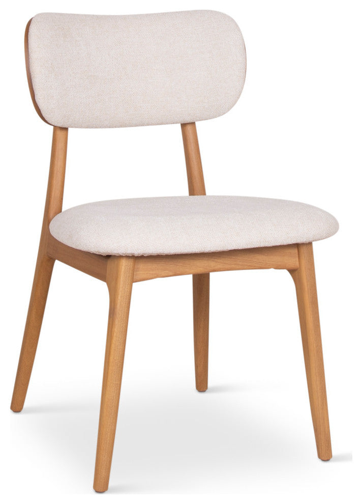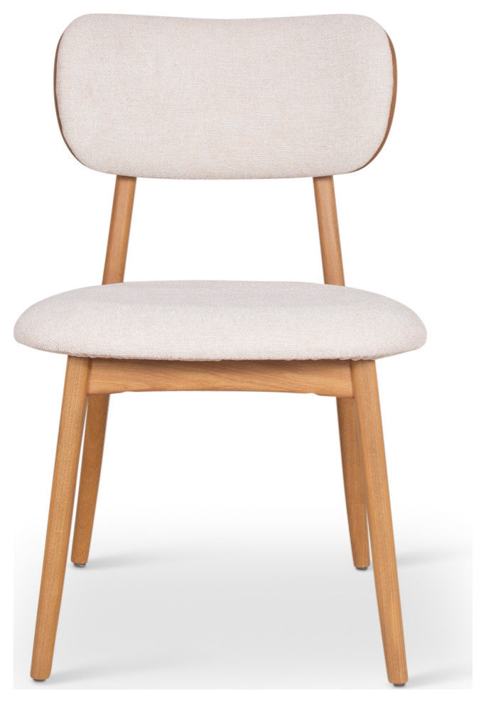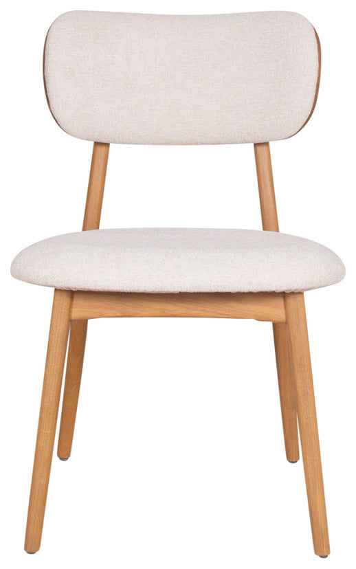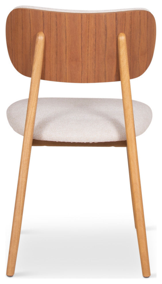 Inspired by mid-century design, our Claudia dining chair features a beautifully curved veneer back that adds timeless elegance to any dining space. Soft durable textured fabric. Curved back panel, the back featuring beautiful wood grain joined seamlessly with upholstery on the front.