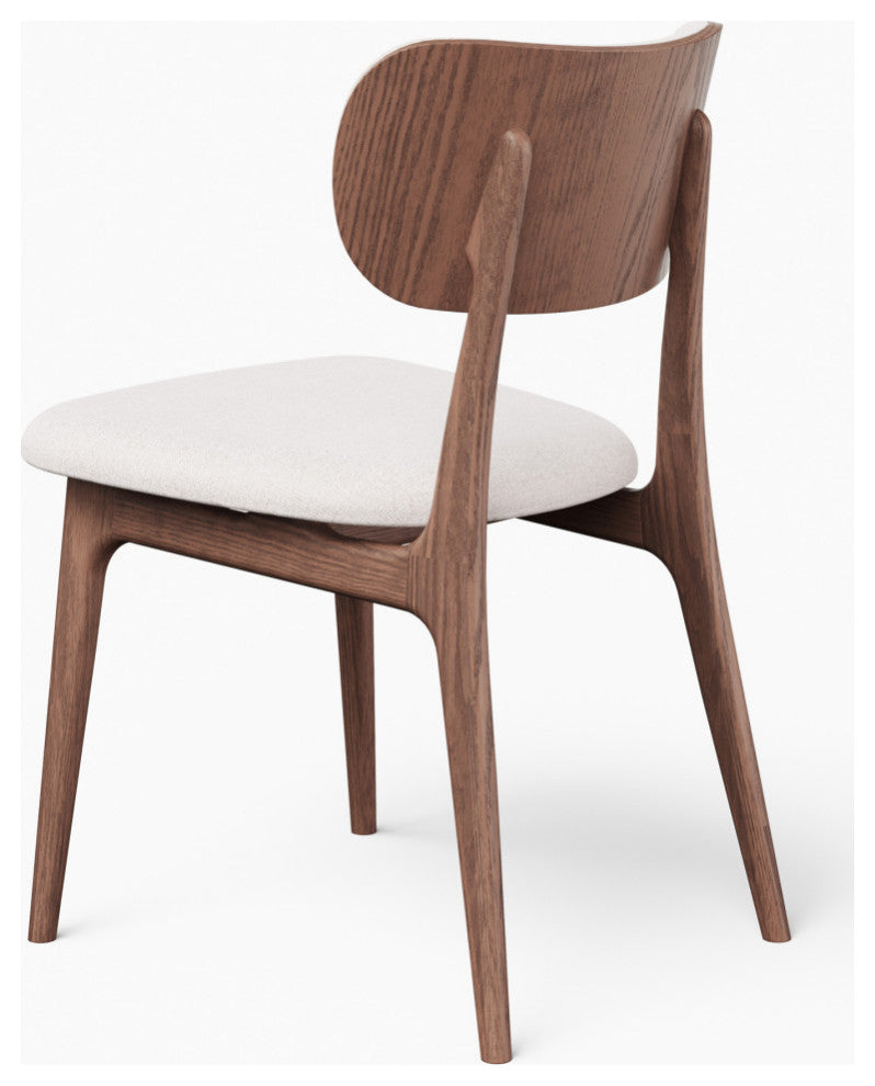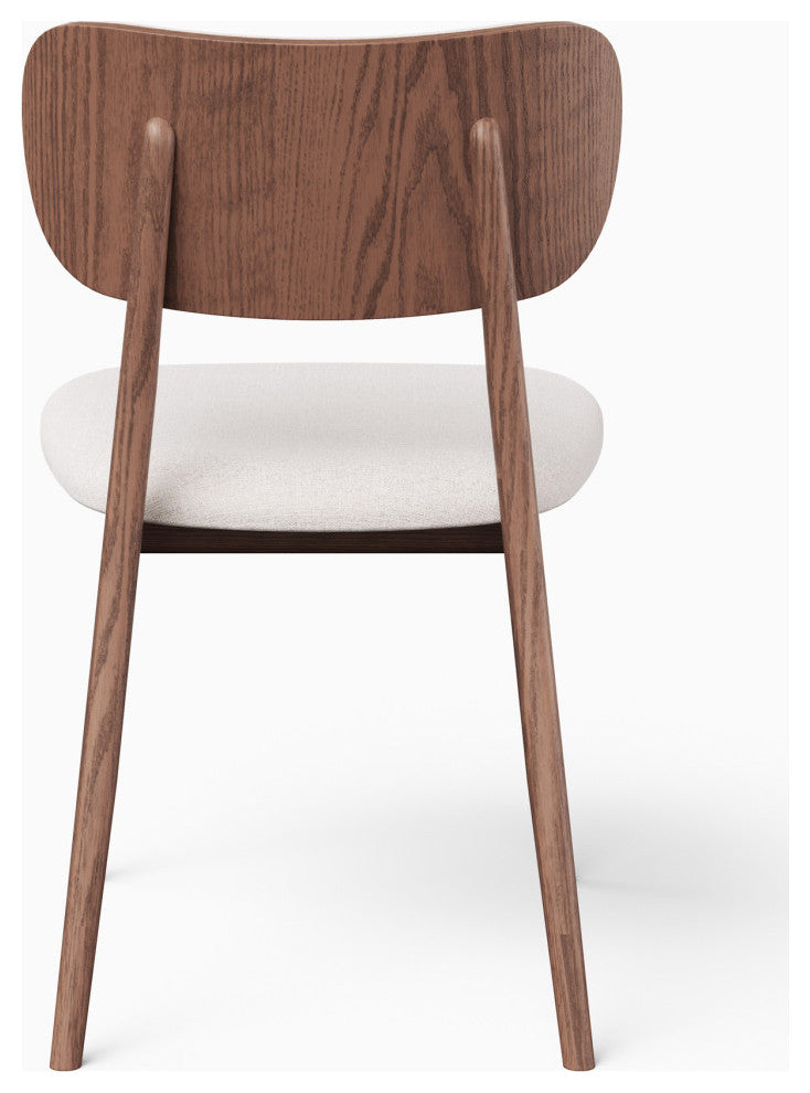 Inspired by mid-century design, our Claudia dining chair features a beautifully curved veneer back that adds timeless elegance to any dining space. Soft durable textured fabric. Curved back panel, the back featuring beautiful wood grain joined seamlessly with upholstery on the front.