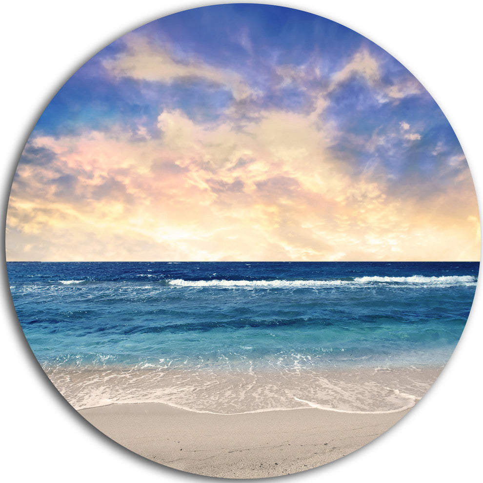 Clear Blue Sky And Ocean At Sunset, Seascape Round Wall Art, 36"