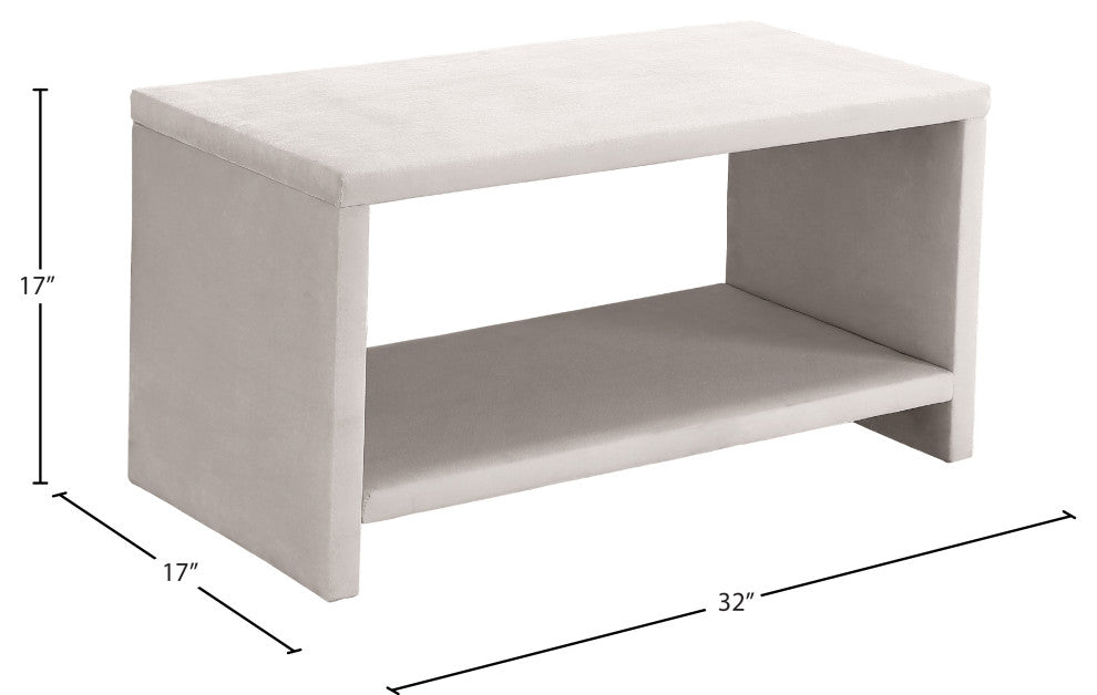 Keep nighttime items close at hand with this Cleo night stand. The perfect accompaniment to your Cleo bed, this night stand is available in an array of colors for spot-on coordination. It''s upholstered in soft cream velvet material for a luxe look and has an open shelf for easy storing of books and other items.Overall Product Dimensions: 31.5" W x 16.5" D x 16.5" HSoft Cream VelvetContemporary Design