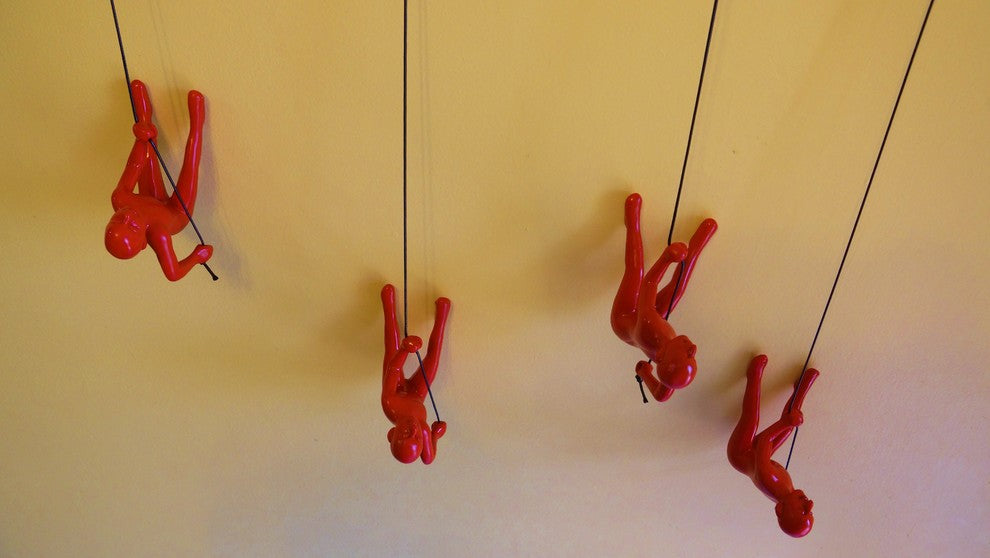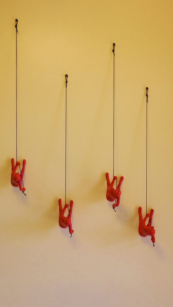 Elevate your home décor and showcase these amazing handmade pieces on your wall at home and in your office! This is our 4 piece set of the Climbing Men in our vibrant Red finish. This home décor item reflects real life as it depicts the struggle of making it through the difficulties. Hang this top modern decorative piece on your wall and feel determined and ready to seize the day!•UNIQUE, HANDMADE PIECE OF ART: Each one of our wall art pieces is unique as it has been carefully made by hand. The ELADITEMS climbing man figures vary in size and they can be 6 to 8"™"™ tall and 3"™"™ wide. Each piece comes with a 30" black leatherette cord and a black hanging pin.•WIDE VARIETY OF COLORS AND BODY POSITIONS: We offer you a variety of striking colors and attention grabbing body posture figures that you can choose from. Select the one that fits your space and impress everyone with your eclectic decoration choices.•Keeping you satisfied is our priority. This is why our products are backed by a 100% money back guarantee.