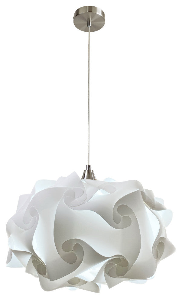 The Cloud Pendant Light makes a stunning accent piece in a dining room, entryway or kitchen. This elegant pendant light has silver steel construction and a round shade made from white spiral polypropylene pieces. Hang it in a contemporary style home for a cohesive look.