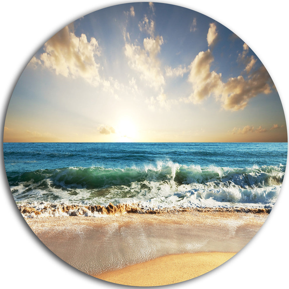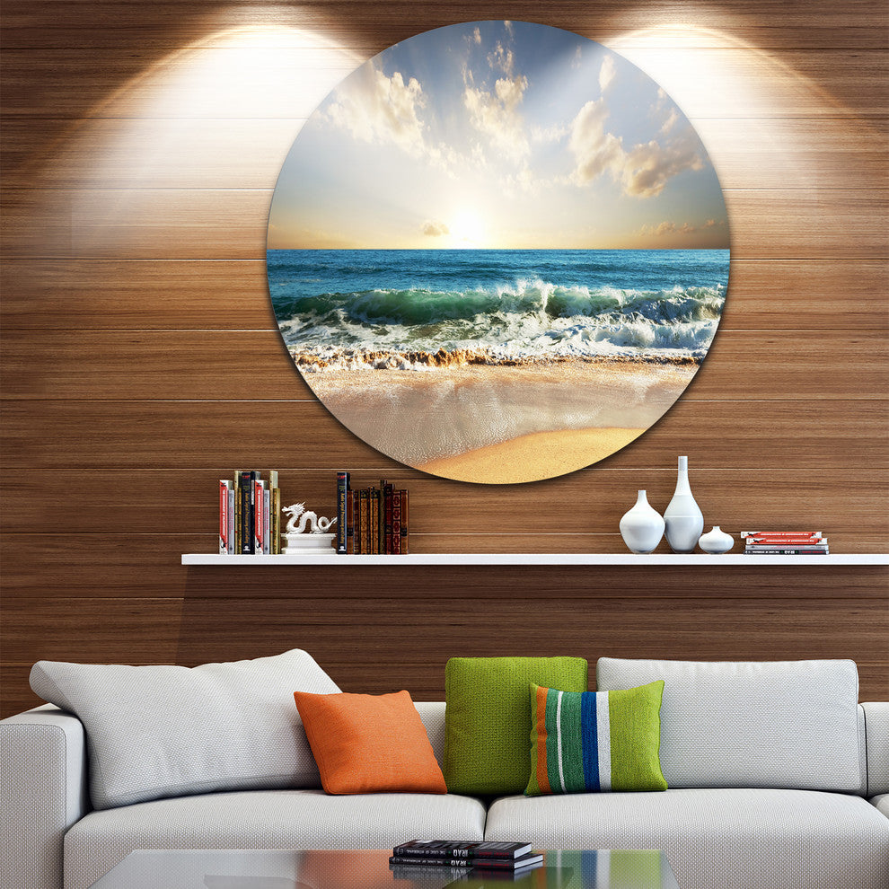 Cloudy Sky And Vibrant Blue Sea, Seashore Disc Metal Artwork, 36"