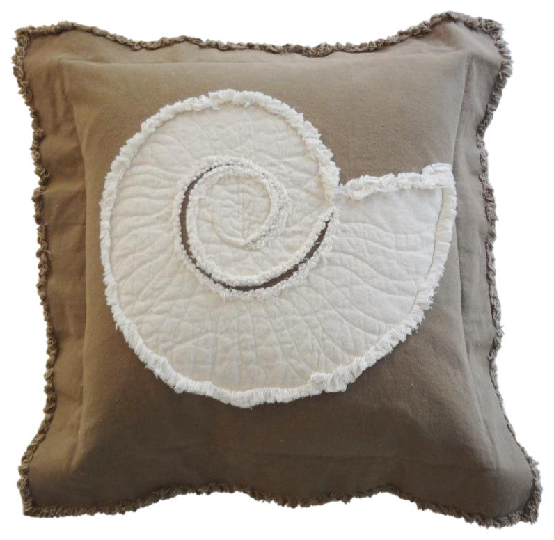 Coastal Nautilus Throw Pillow, Ivory on Khaki