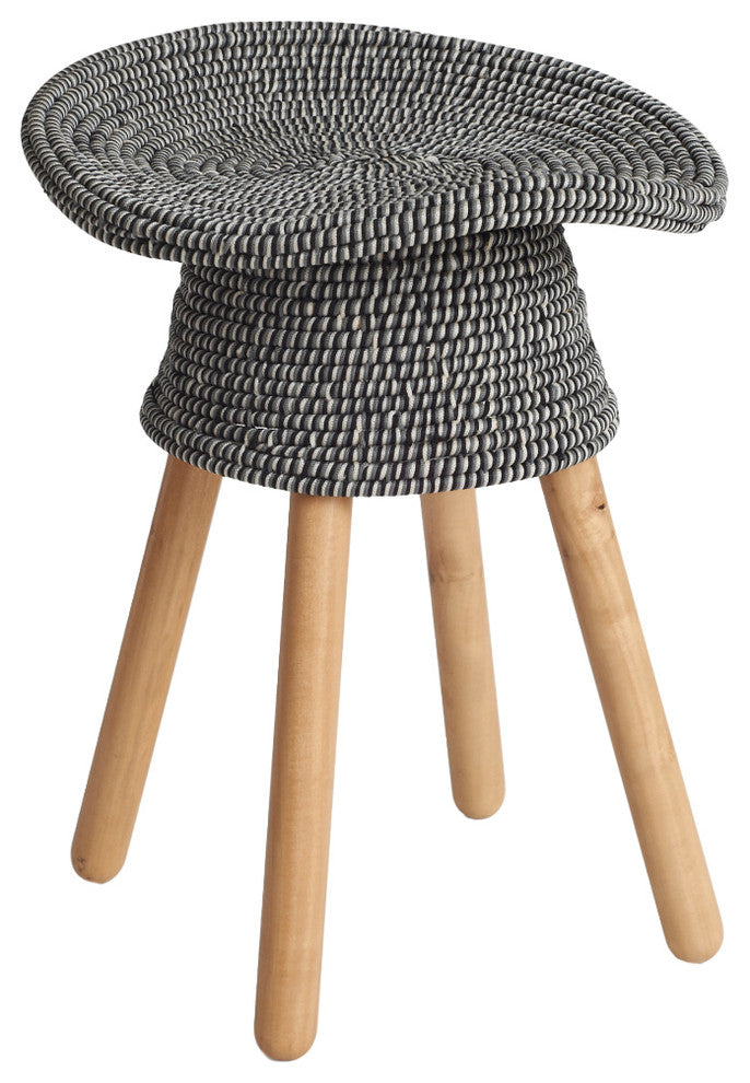 The Coiled Stool was inspired by the traditional basket-making techniques of the Philippines. Hand-woven threads cover a rattan core to create a surprisingly comfortable tractor seat. The Coiled Stool fits easily into casual and formal environments