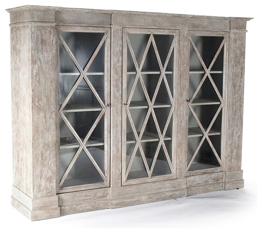 Colin French Country Rustic Distressed White Crisscross Doors Cabinet