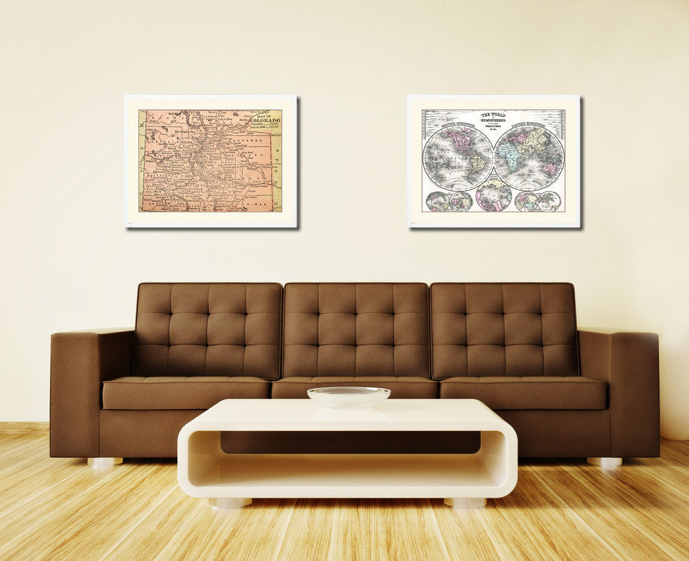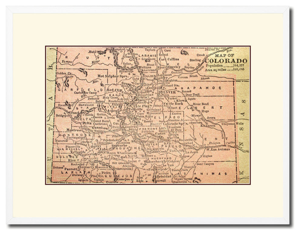 Colorado Old Map Print On Canvas With Picture Frame Art Collection 16" X 21"