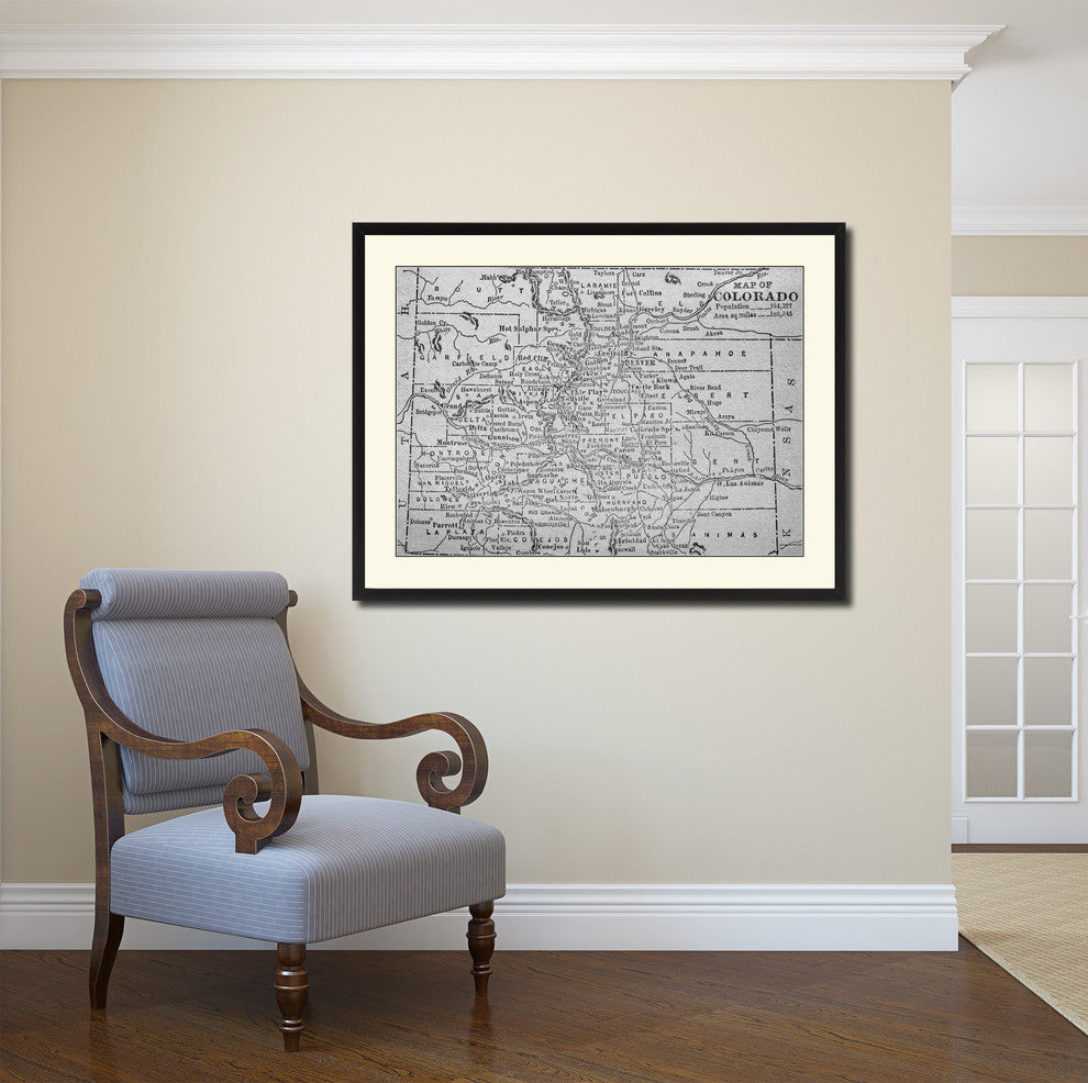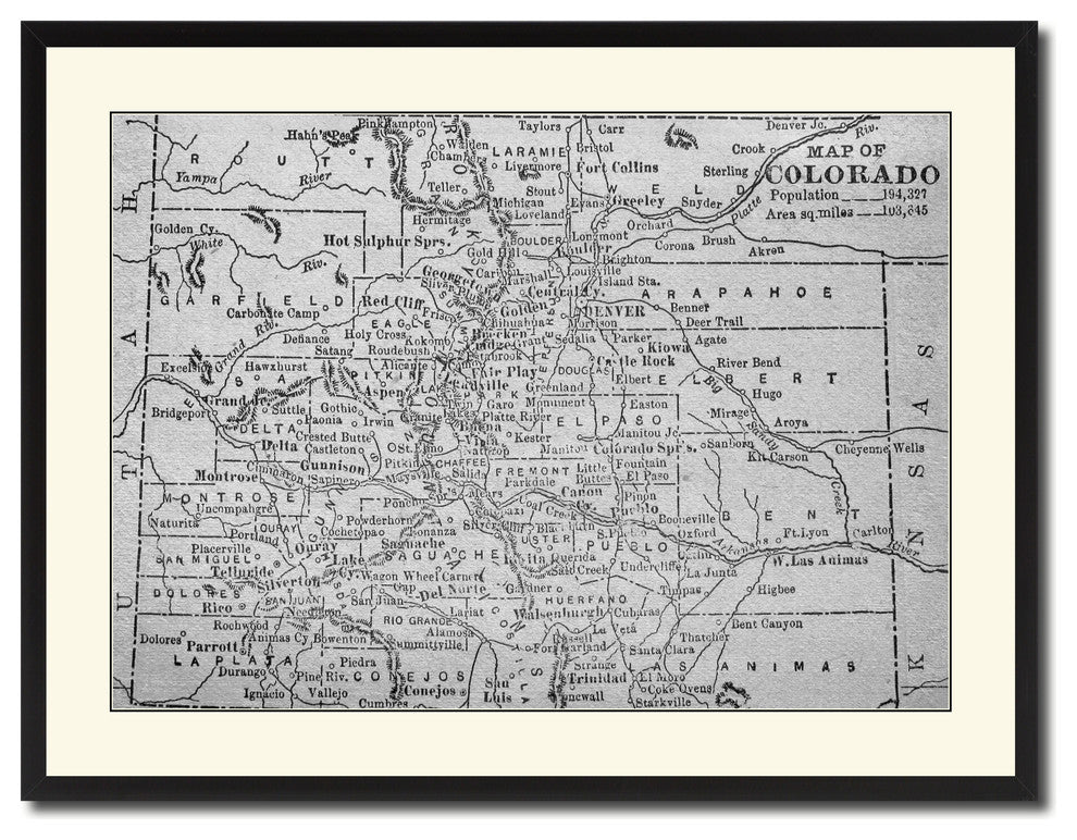 Colorado Vintage B&W Map Canvas Print, 28"x37"