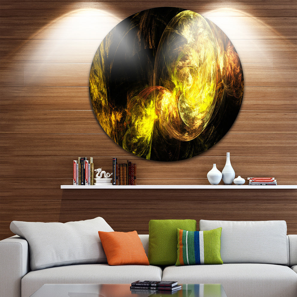 Colored Smoke Golden, Abstract Digital Art Disc Metal Wall Art, 38"