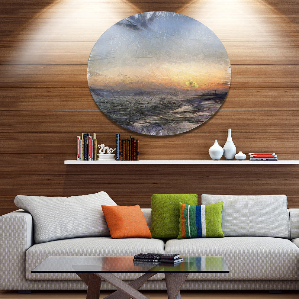 Bring Contemporary Abstraction to your home with this large Circle Metal wall art. This Colorful Dawn over Sea Watercolor Metal Artwork makes it the focal point of any room or office.