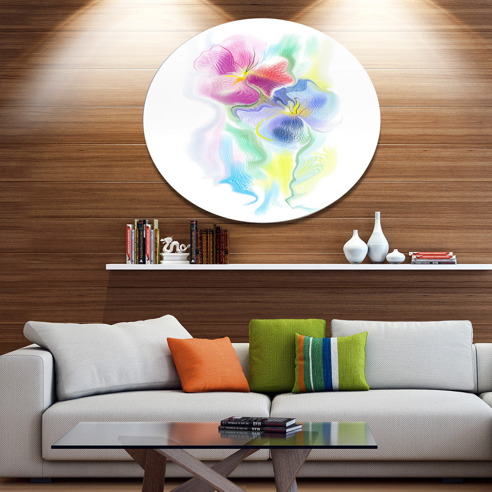 Bring Contemporary Abstraction to your home with this large Circle Metal wall art. This Colorful Floral Watercolor Sketch Metal Artwork makes it the focal point of any room or office.