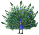From the Regal Peacock CollectionPeacock features a body that is covered in blue glitter and opened green tail feathers that are accented with blue glitter and clear gemstonesFree standing decoration can be placed in a Christmas tree, wreath or can stand alone on a table topRecommended for indoor useDimensions: 17"H x 18"W x 6"DMaterial(s): Foam/Faux feathers/Plastic/Wire