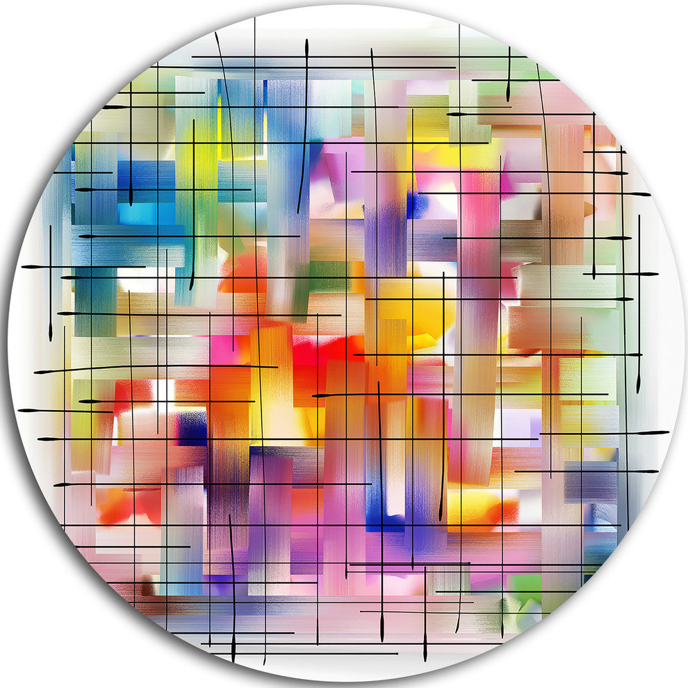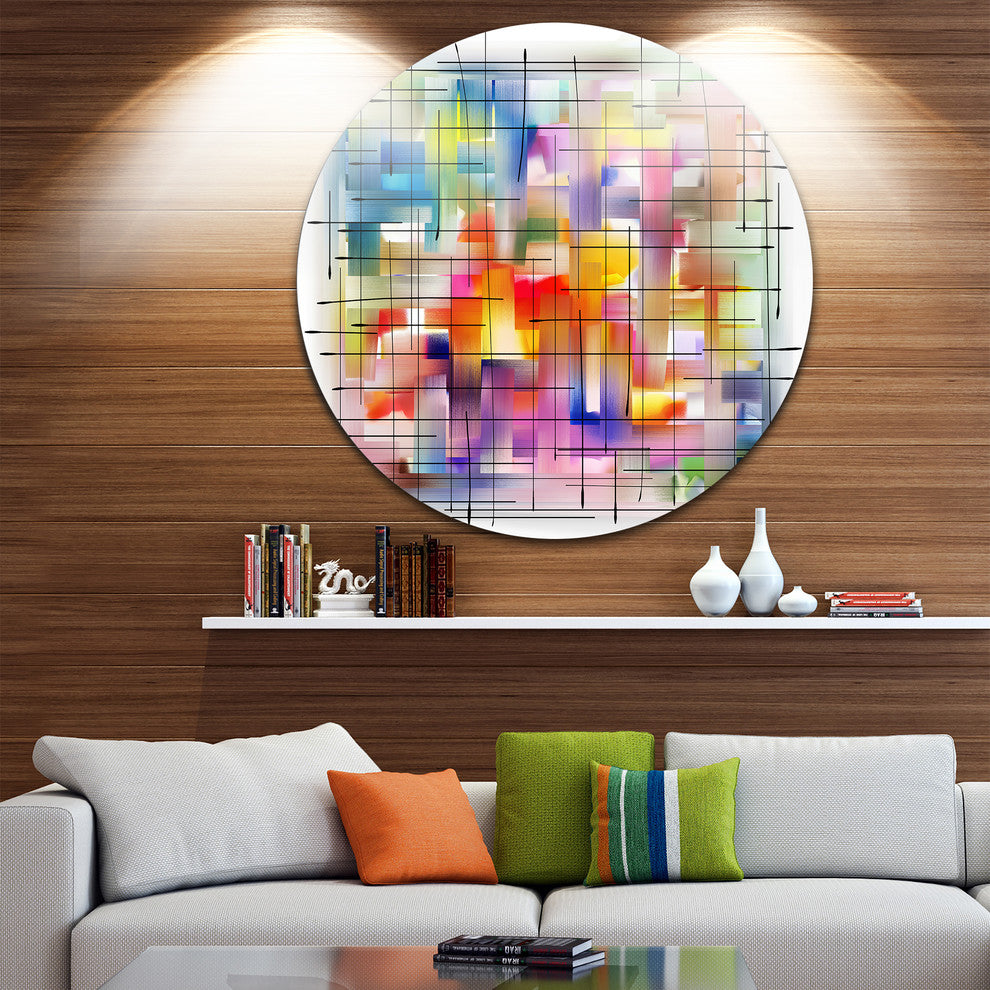 Colorful Stain Design With Grid, Abstract Painting Round Wall Art, 36"