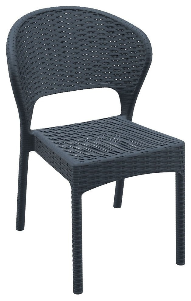 Daytona wickerlook resin dining set with four dining chairs and one extendable dining table which extends from 39 to 55 inches. It can be used as a square or rectangle table. Made for commercial durability. Chairs are stackable. UV treated. Hose down for cleaning. Withstands outdoor temperatures summer and winter. Table has levelers for uneven surfaces. No metal parts. Dining set is perfect for heavy use areas. Set items are 100% resistant to outdoors, sun, snow, salt. Resin is virtually maintenance free.