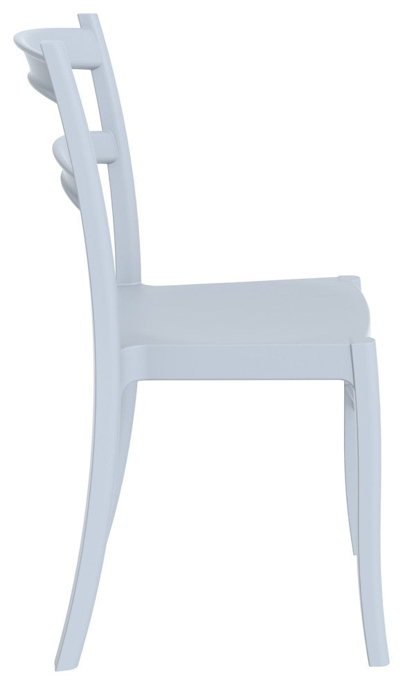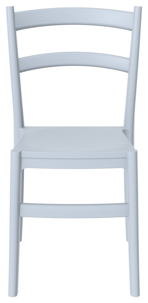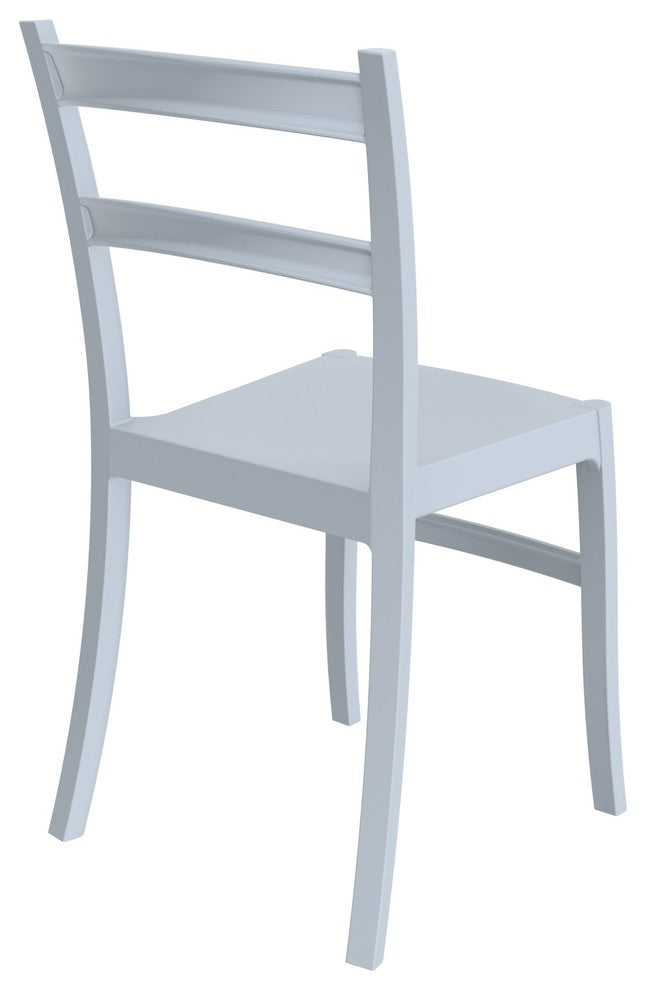 The Tiffany chairs are simple, stylish and sturdily built. Settle them at an intimate bistro table on your back patio, or grab a couple sets to dress up your eat-in kitchen "” they sit well just about anywhere.Set of 2 cafe-style indoor/outdoor dining chairsMade with commercial-grade resin polypropyleneGas injection molded legsColor: Silver-grayMaterial: PolypropyleneDimensions: W 17.7" x D 20" x H 33"