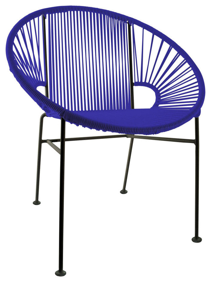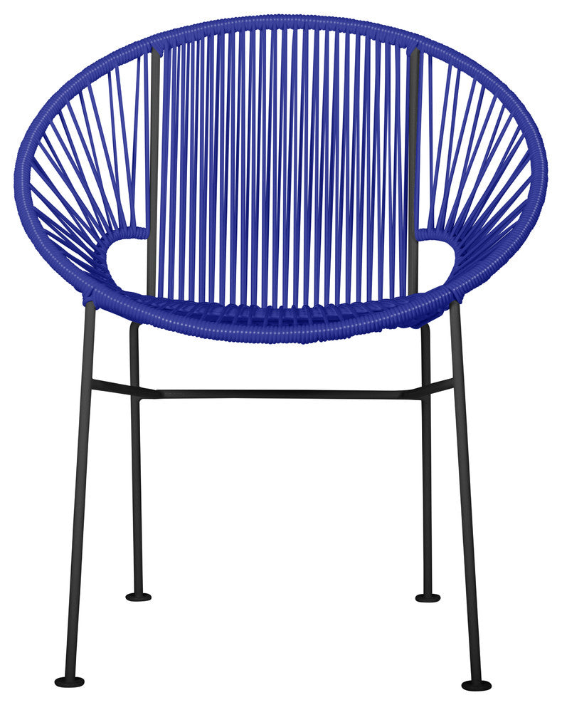Concha Indoor/Outdoor Handmade Dining Chair, Deep Blue Weave, Black Frame