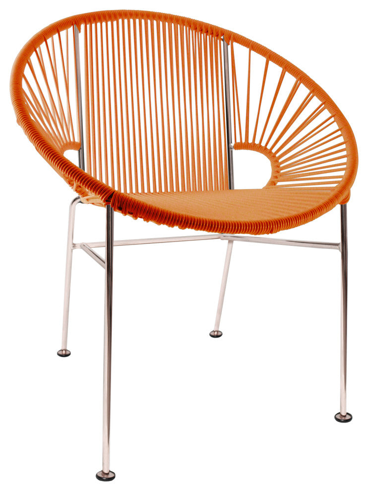 Concha Indoor/Outdoor Handmade Dining Chair, Orange Weave, Chrome Frame