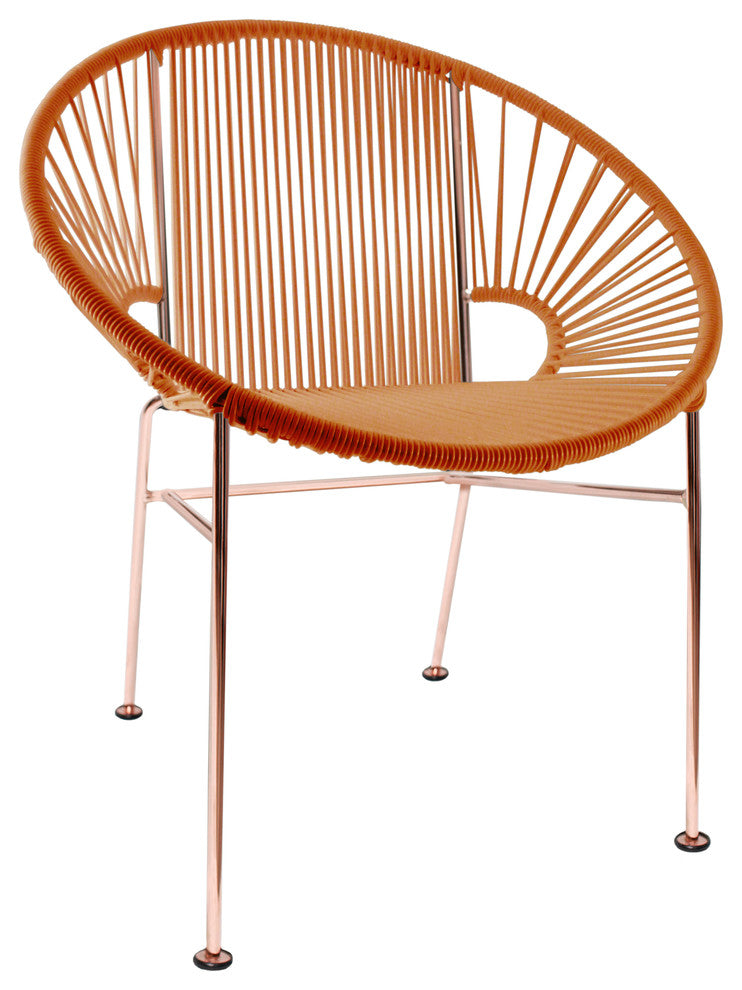 Concha Indoor/Outdoor Handmade Dining Chair, Orange Weave, Copper Frame