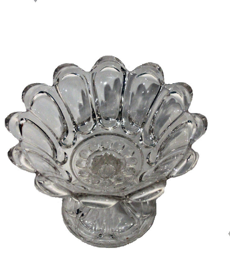 This is a Compote dish from circa 1850 It is flint glass. You can ping it (flick your finger at it) and it rings! The pattern is a raised petal and loop. Good condition. Very slight wear and tear.