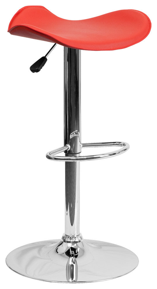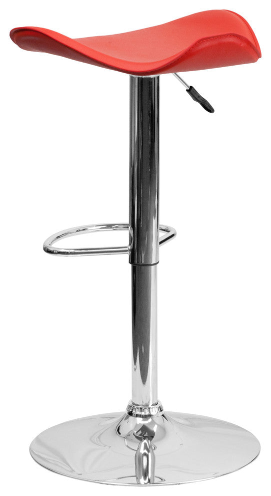 Contemporary Red Vinyl Adjustable Barstool With Chrome Base