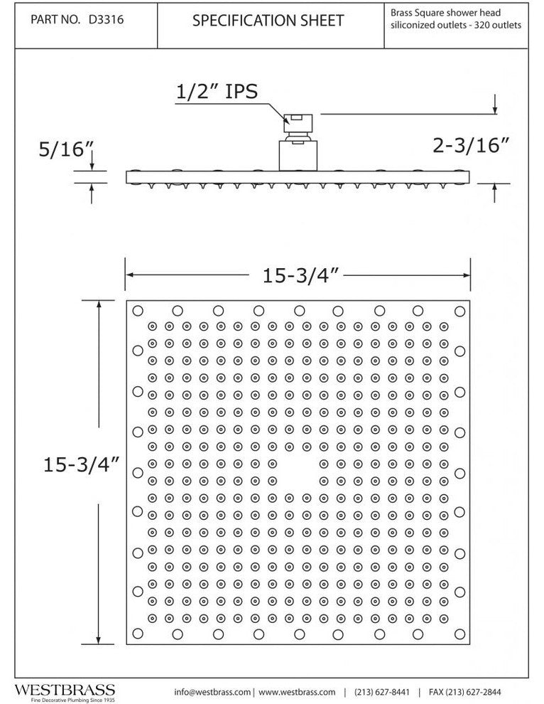 This 16" Contemporary Square Shower Head is the ultimate in contemporary and modern design. Featuring an ultra-thin 5/16" wall thickness and 324 easy-clean outlet nozzles, this shower head by Westbrass combines style and functionality at its best.