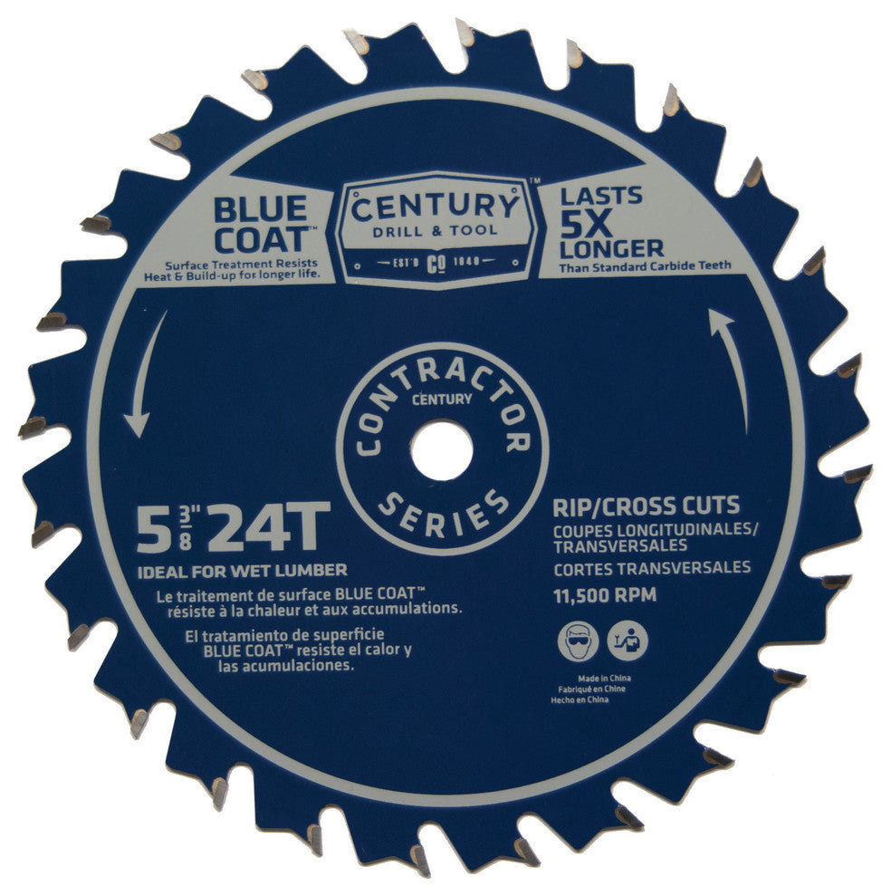 Circular Saw Blade Contractor Series Thin Kerf-Combination Blade 5-3/8" X 24T. 10 Mm Arbor. Safe Maximum Rpm Speed 11,500. Accurate Rip Cuts.